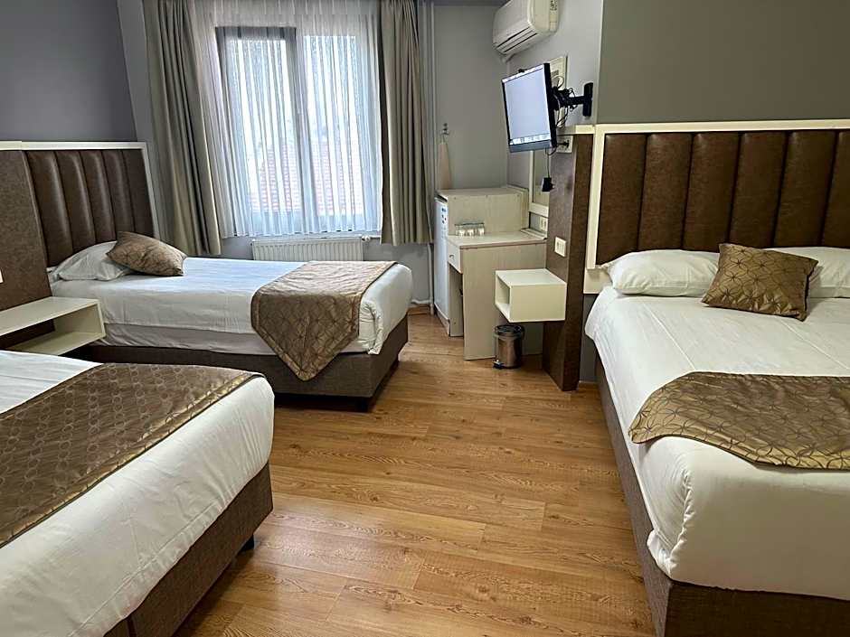 Air-conditioned room offers an mini-bar and an LCD TV with satellite channels. It comes with 3 single beds or 1 double bed and 1 single bed.